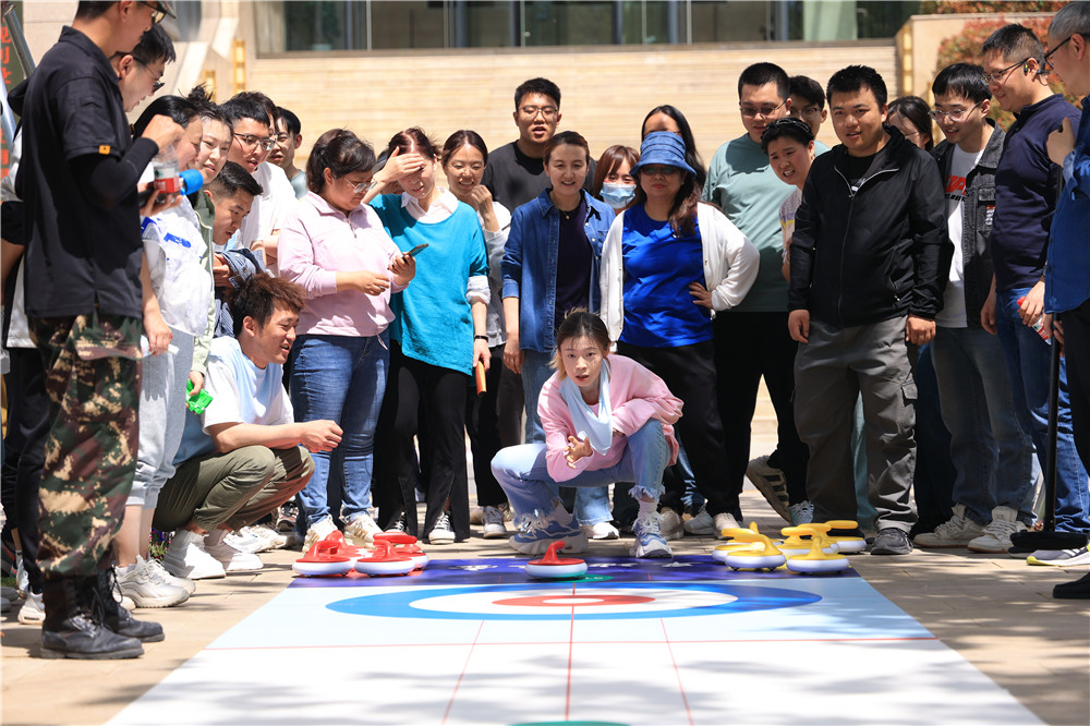 精心設(shè)計的大腳行走、大錘軋球、重走長征路、無敵風(fēng)火輪、旱地冰壺等趣味PK項目,巧妙地將200余名參賽者隨機組合為7支團結(jié)協(xié)作的小家庭,在歡樂的氣氛中加深了彼此的了解與友誼。